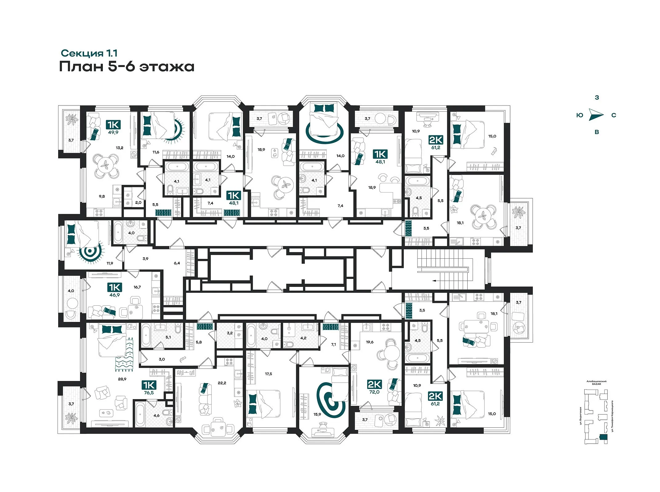 Общая площадь 72 м2
