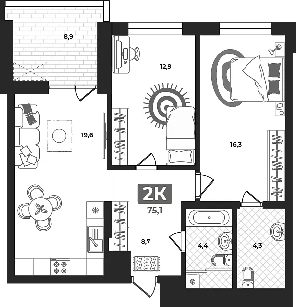Площадь (общ/жил/кух), м2: 75.5/32.9/—