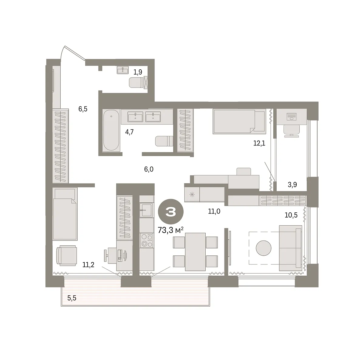 Купить новую двухкомнатную квартиру 73.27 м² на 16/17 этаже в ЖК «Октябрьский на Туре», г. Тюмень за 9620000 ₽ | Агентство недвижимости «Вплюсе.Топ» — Недвижимость России