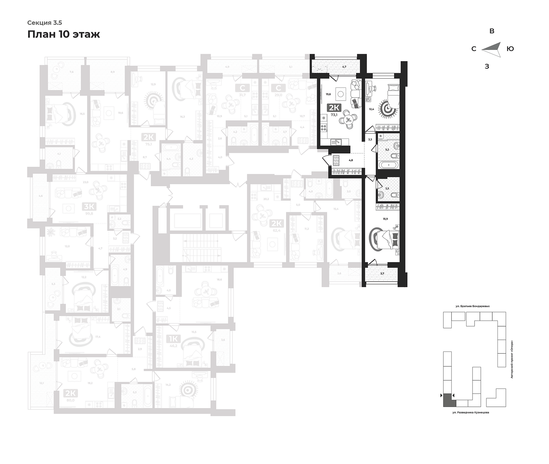 Площадь (общ/жил/кух), м2: 73.4/29.7/—