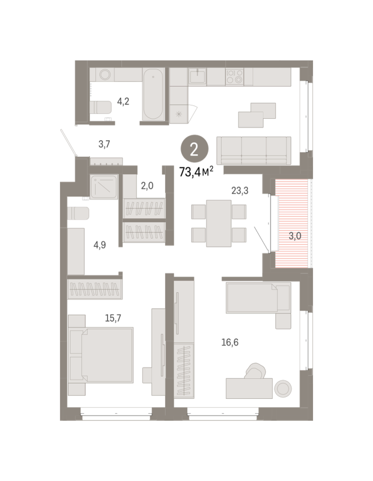 Купить новую двухкомнатную квартиру 73.37 м² на 5/7 этаже в ЖК «Кварталы «На Минской»», г. Тюмень за 12380000 ₽ | Агентство недвижимости «Вплюсе.Топ» — Агентство недвижимости "Вплюсе.Топ"