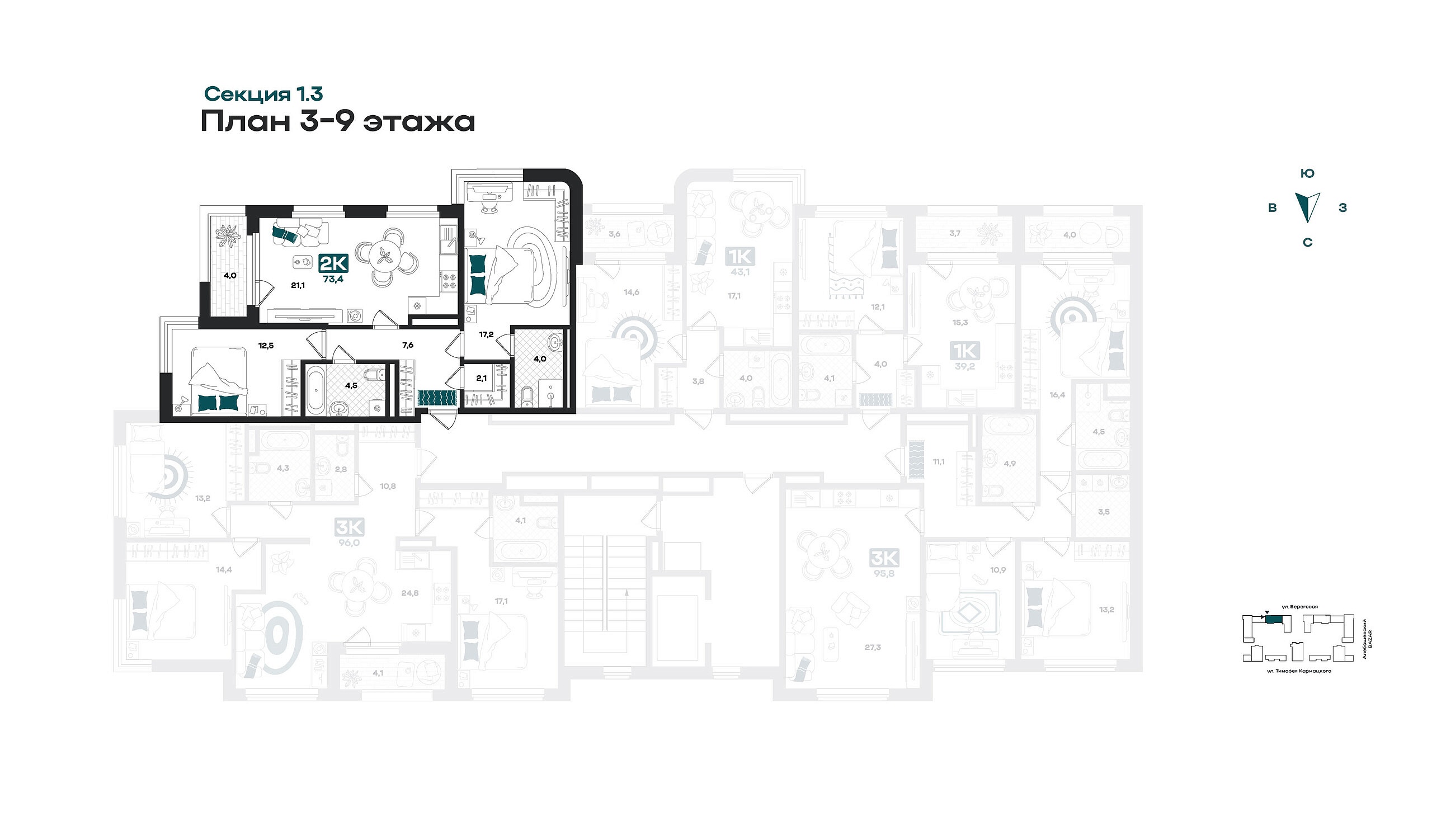Площадь (общ/жил/кух), м2: 73.3/28.4/—