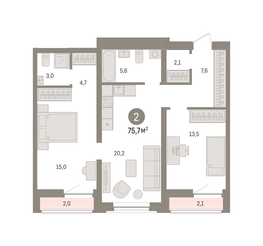 Купить новую двухкомнатную квартиру 76.1 м² на 3/10 этаже в ЖК «Речной порт», г. Тюмень за 10430000 ₽ | Агентство недвижимости «Вплюсе.Топ» — Недвижимость России