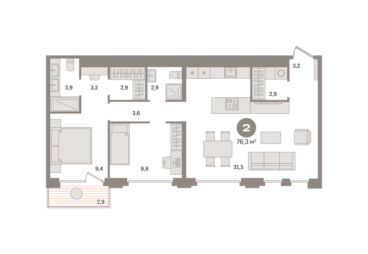 Купить новую двухкомнатную квартиру 76.3 м² на 8/21 этаже в ЖК «Дом «А»», г. Тюмень за 53330000 ₽ | Агентство недвижимости «Вплюсе.Топ» — Агентство недвижимости "Вплюсе.Топ"