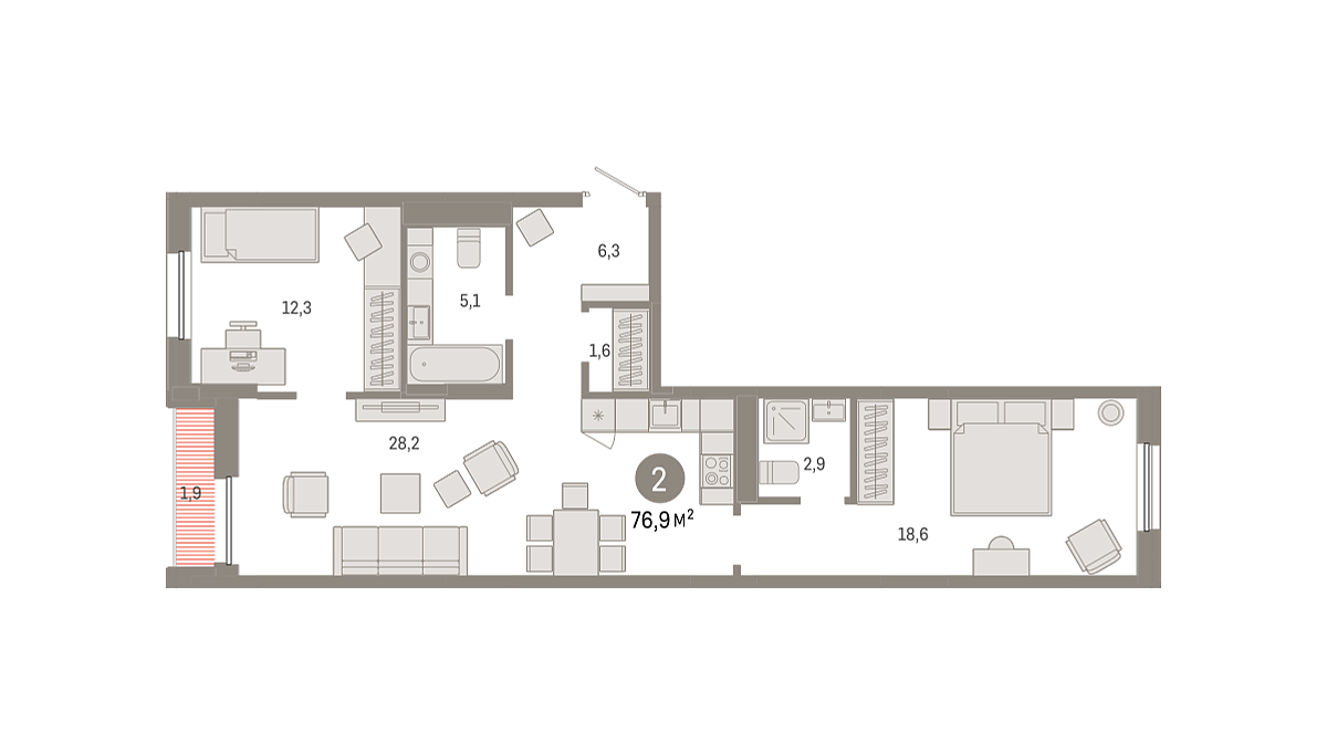 Купить новую двухкомнатную квартиру 76.86 м² на 6/17 этаже в ЖК «Республики 205», г. Тюмень за 10530000 ₽ | Агентство недвижимости «Вплюсе.Топ» — Недвижимость России