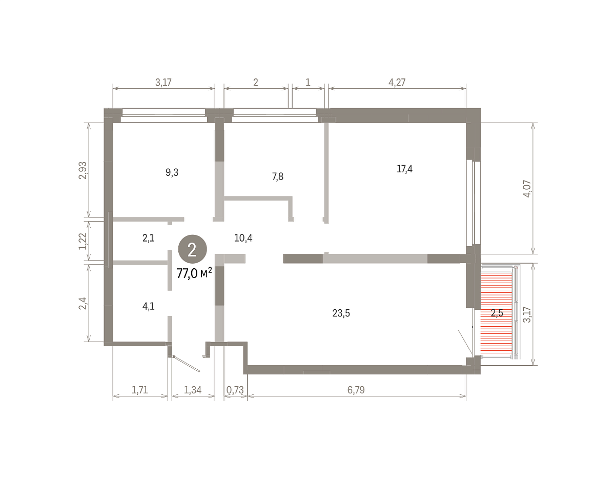 Площадь (общ/жил/кух), м2: 76.29/23.03/25.42