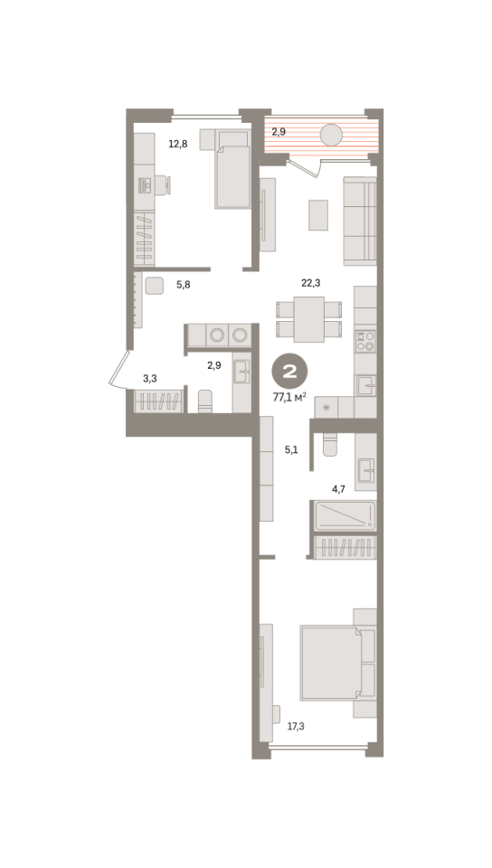 Площадь (общ/жил/кух), м2: 77.1/23.4/22.3