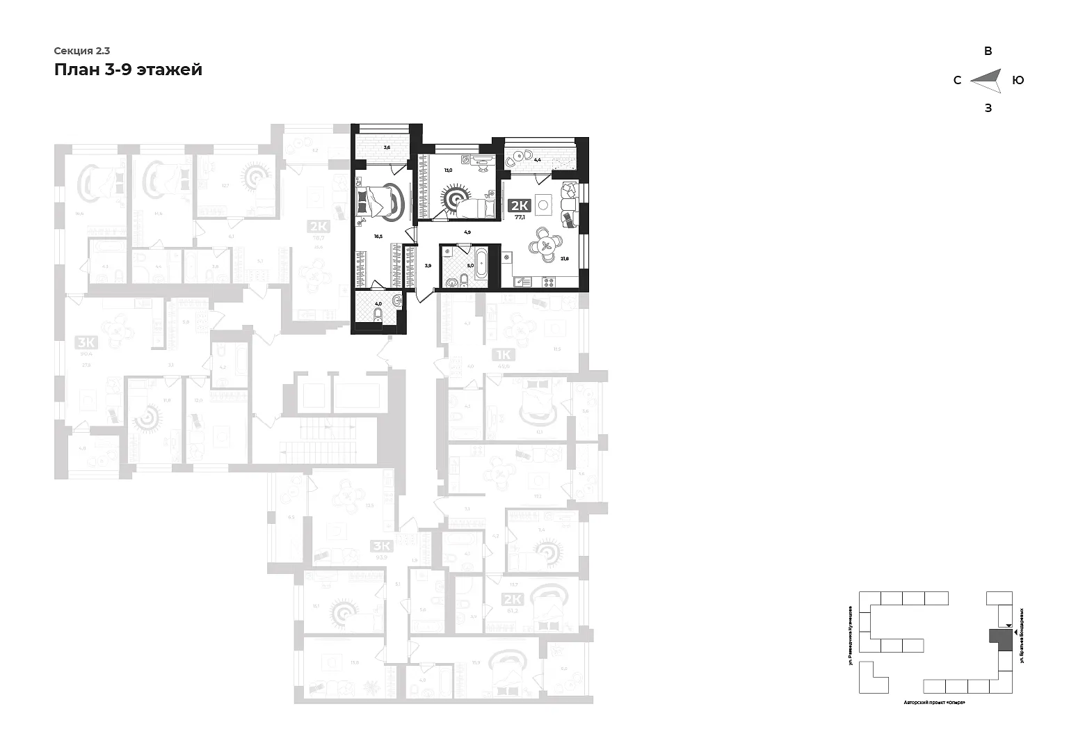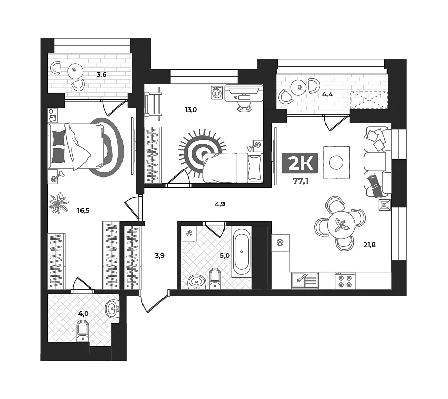 Количество комнат: 2, 77.5 кв.м.