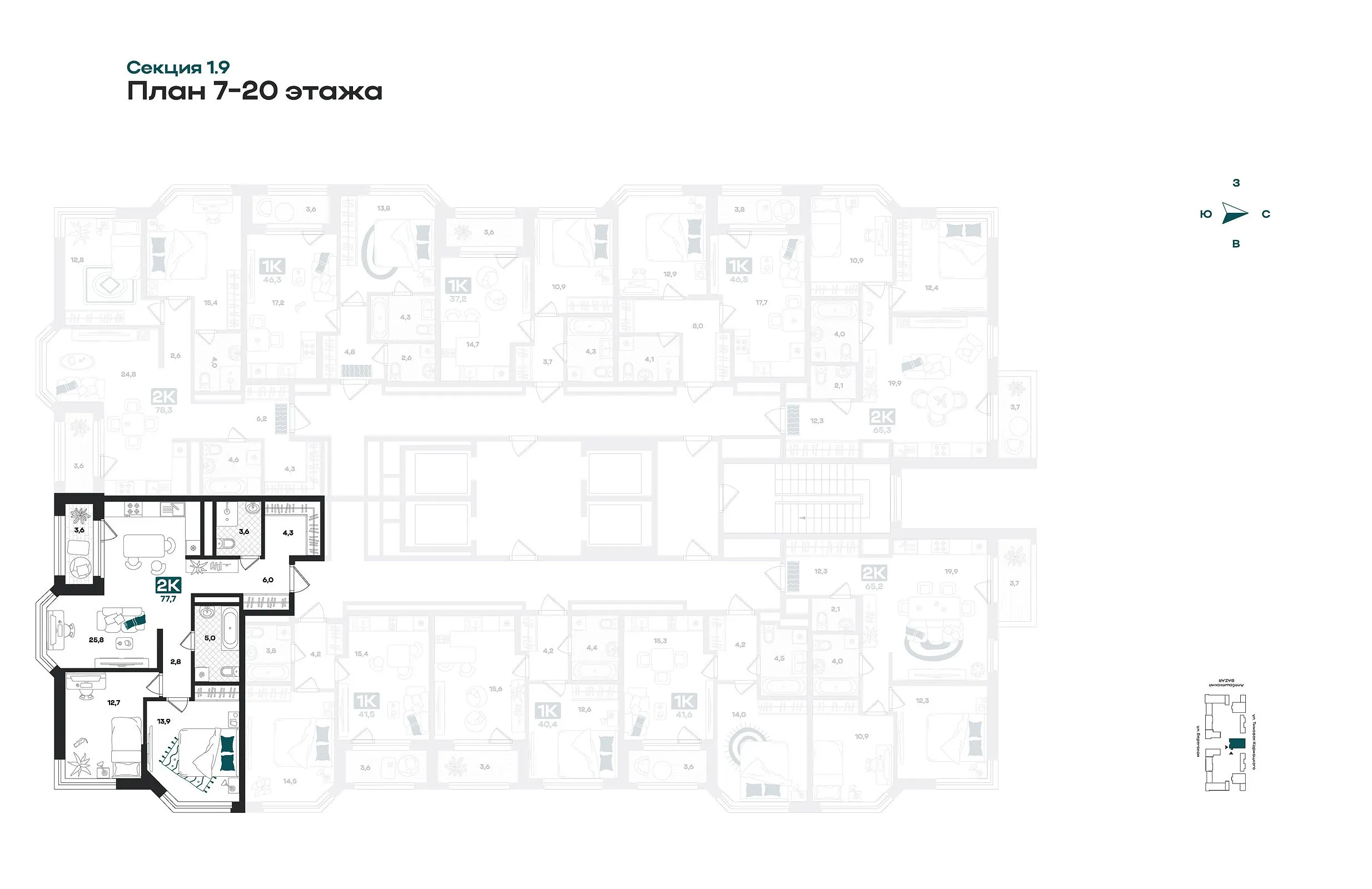 Общая площадь 77.7 м2