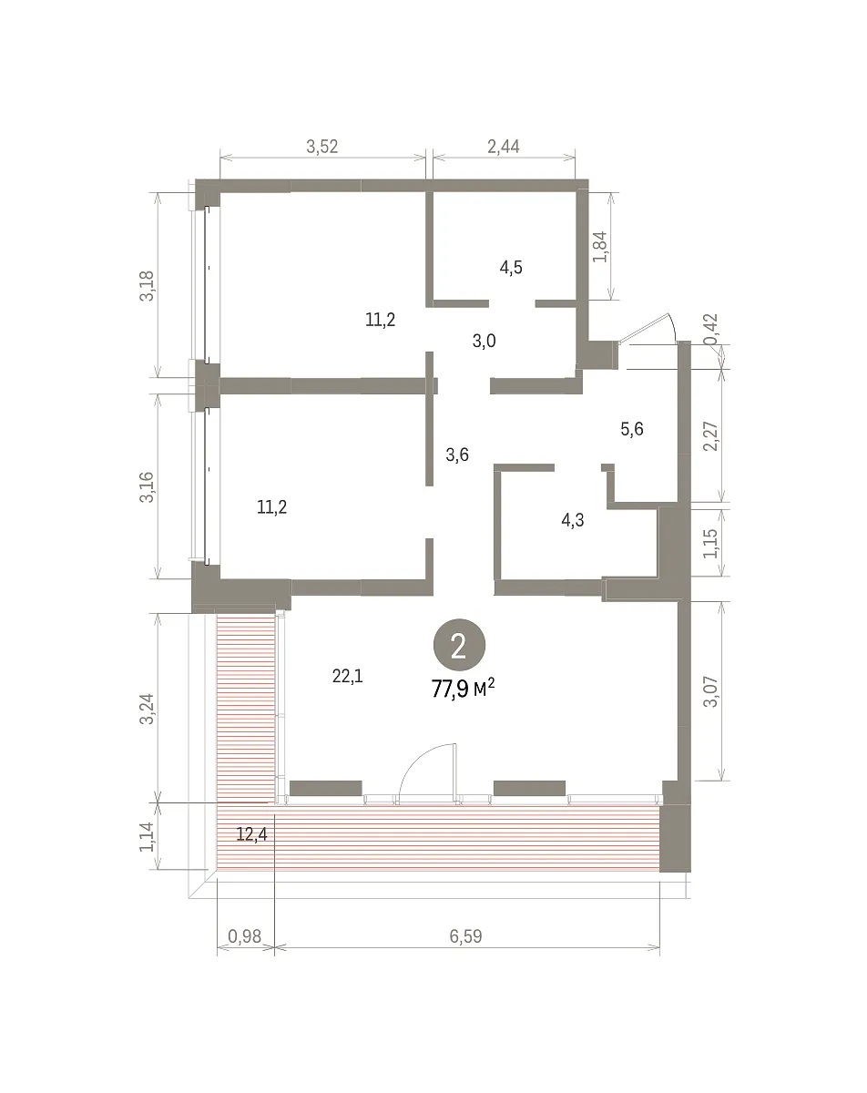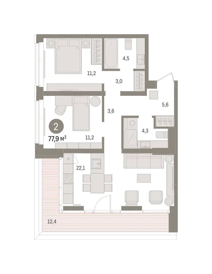 Количество комнат: 2, 77.85 кв.м.