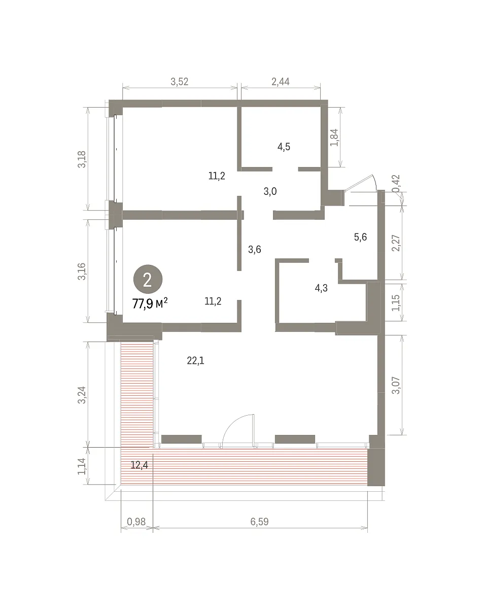Количество комнат: 2, 77.85 кв.м.