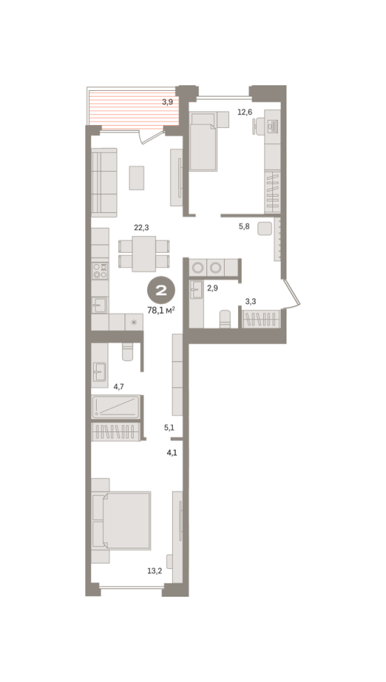 Площадь (общ/жил/кух), м2: 78.1/23.4/22.3
