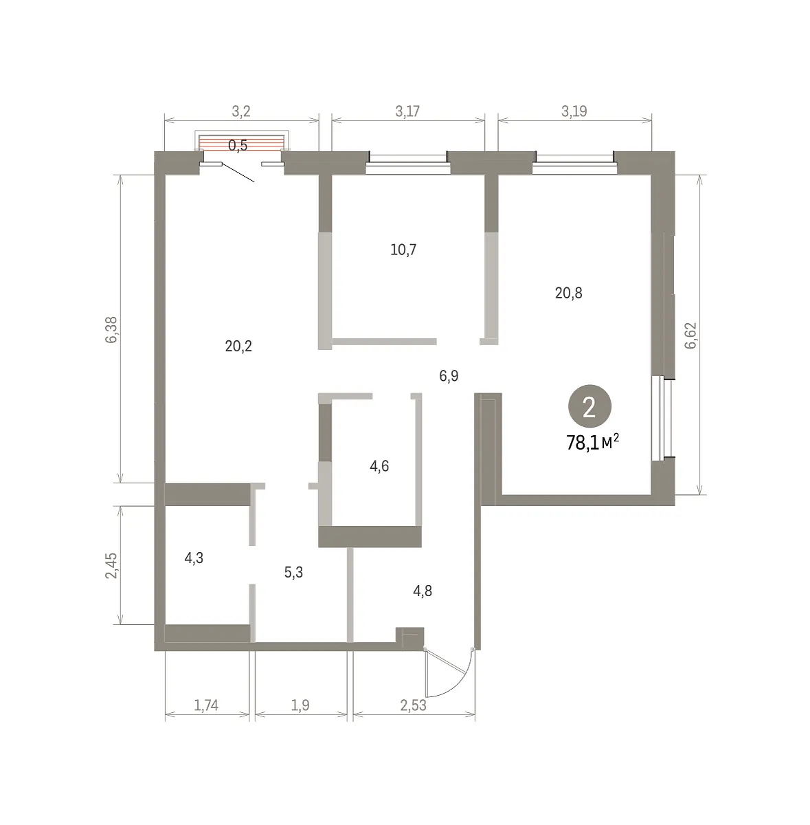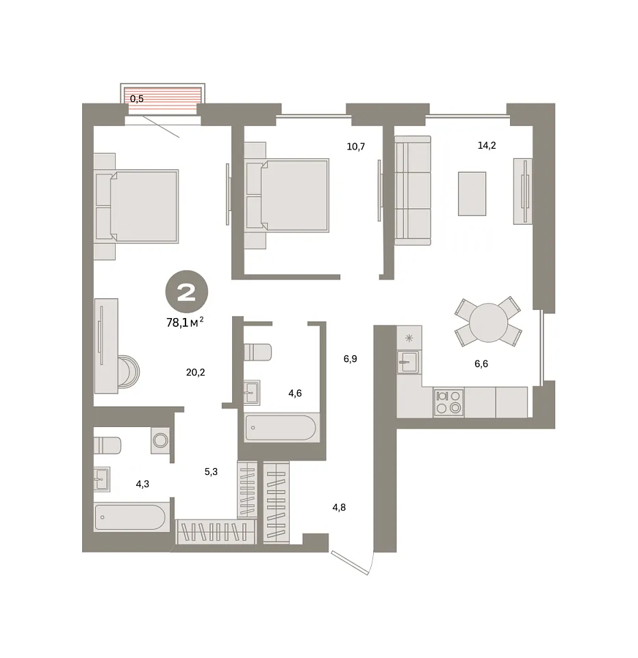 Количество комнат: 2, 78.1 кв.м.