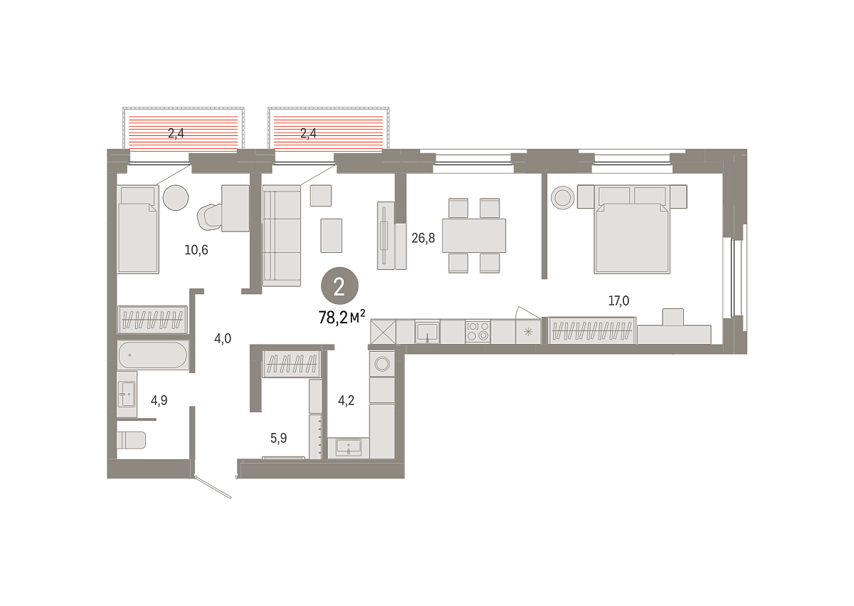 Количество комнат: 2, 78.19 кв.м.