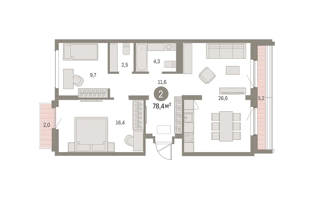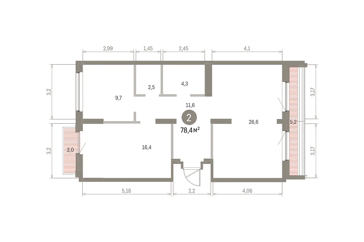 Количество комнат: 2, 78.36 кв.м.
