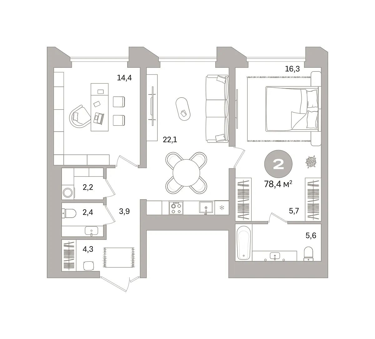 Количество комнат: 2, 78.39 кв.м.