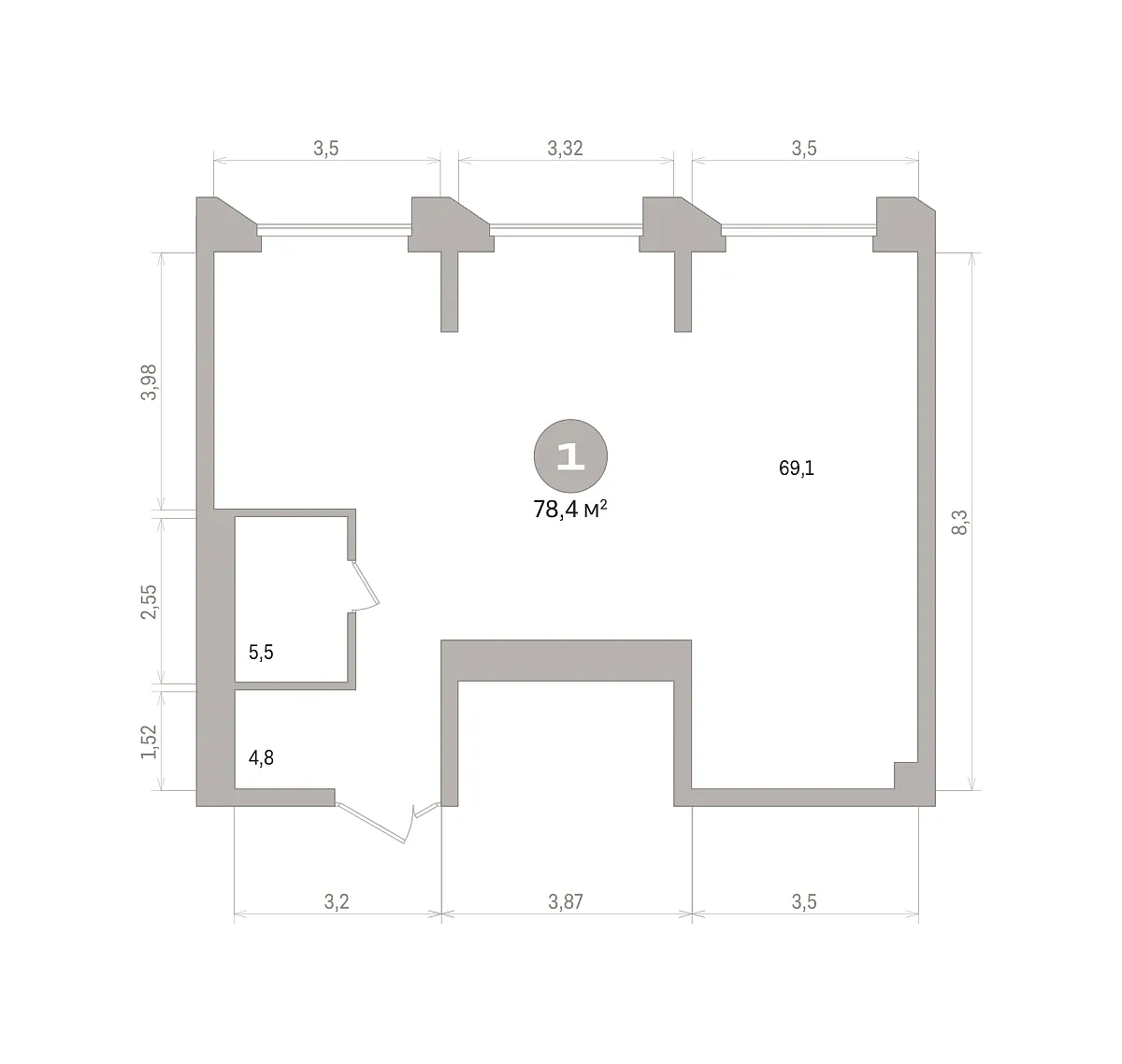 Общая площадь 78.39 м2