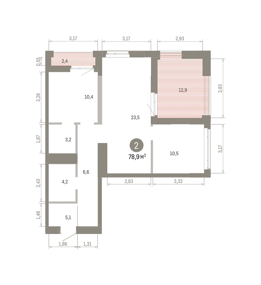Количество комнат: 2, 78.89 кв.м.