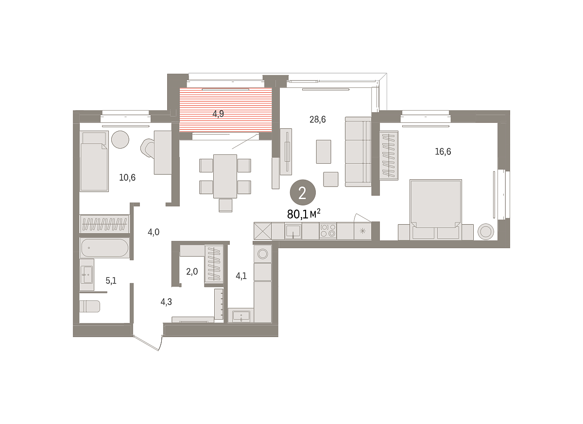 Купить новую двухкомнатную квартиру 80.12 м² на 5/7 этаже в ЖК «Кварталы «На Минской»», г. Тюмень за 11430000 ₽ | Агентство недвижимости «Вплюсе.Топ» — Недвижимость России