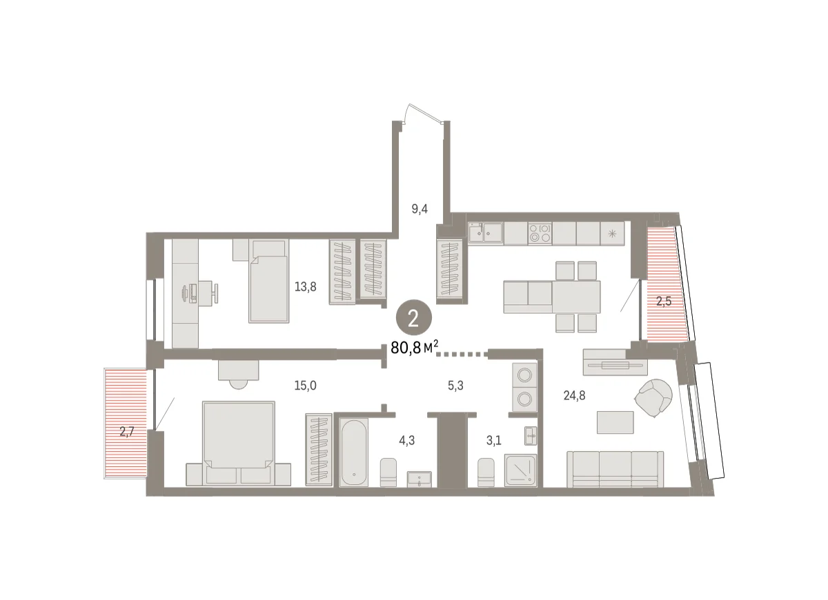 Купить новую двухкомнатную квартиру 80.3 м² на 7/8 этаже в ЖК «Речной порт», г. Тюмень за 12760000 ₽ | Агентство недвижимости «Вплюсе.Топ» — Недвижимость России