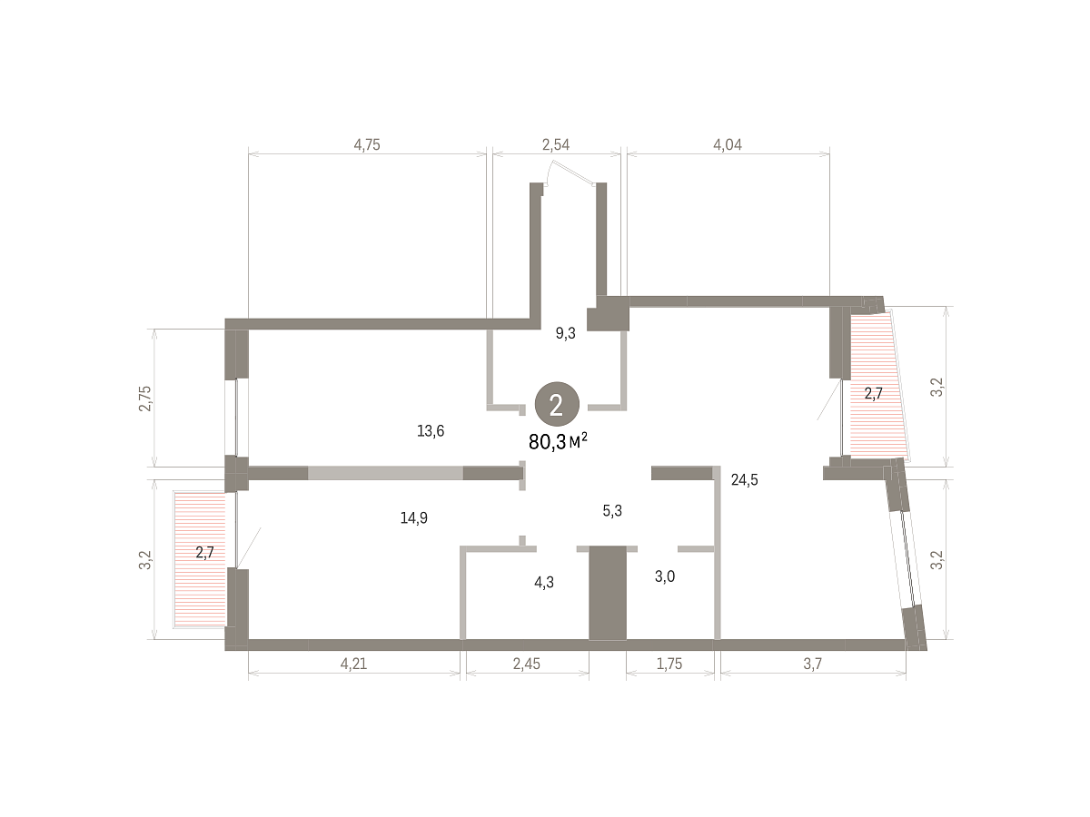 Площадь (общ/жил/кух), м2: 75.2/21.8/23.7