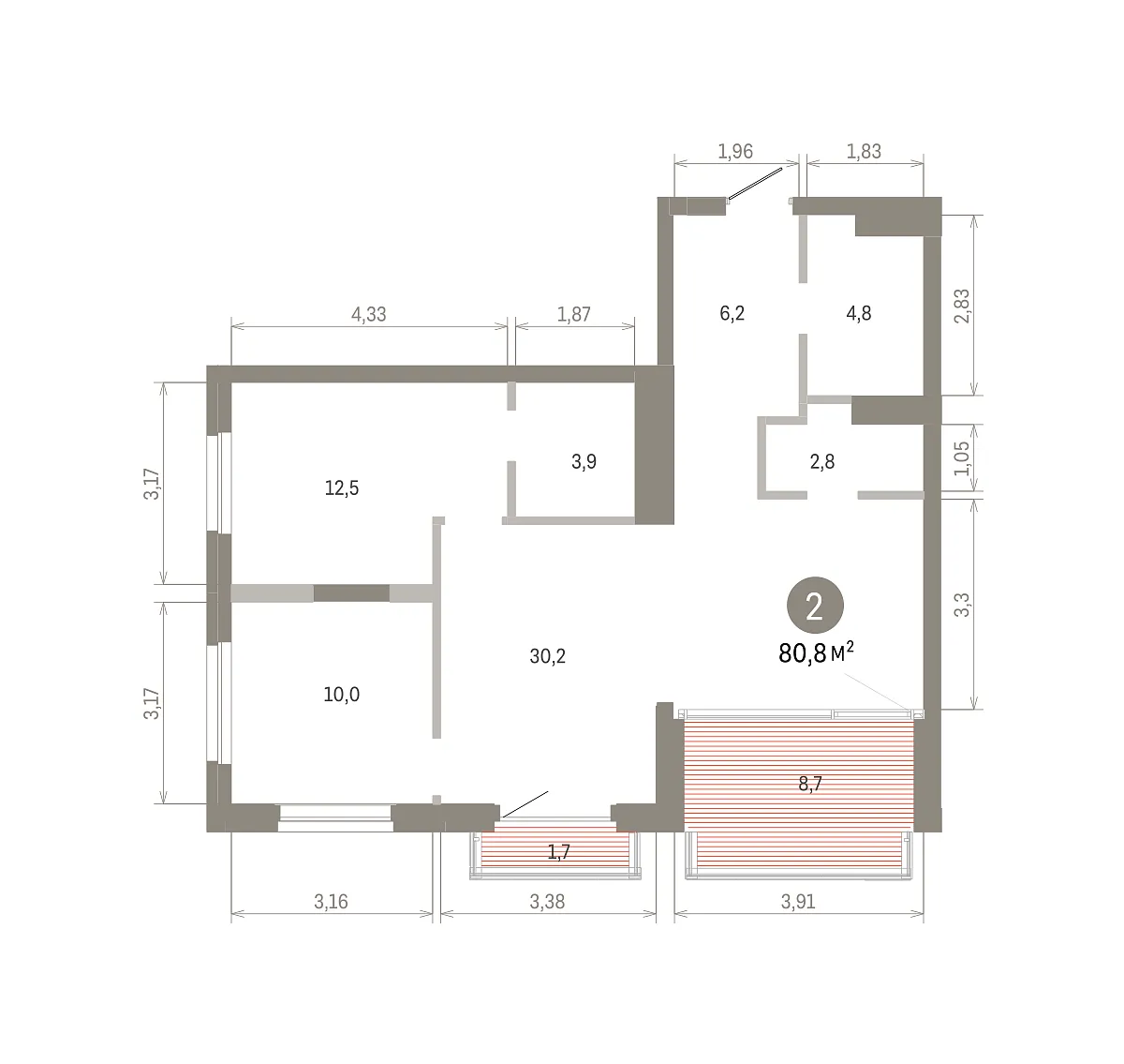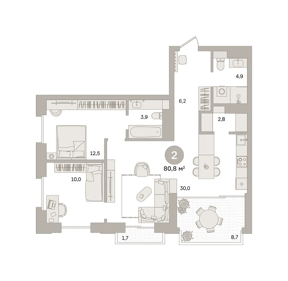 Количество комнат: 2, 80.84 кв.м.