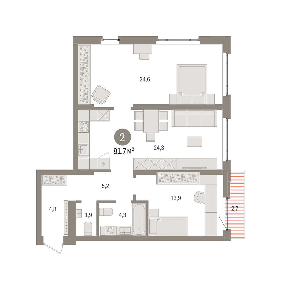 Количество комнат: 2, 81.7 кв.м.