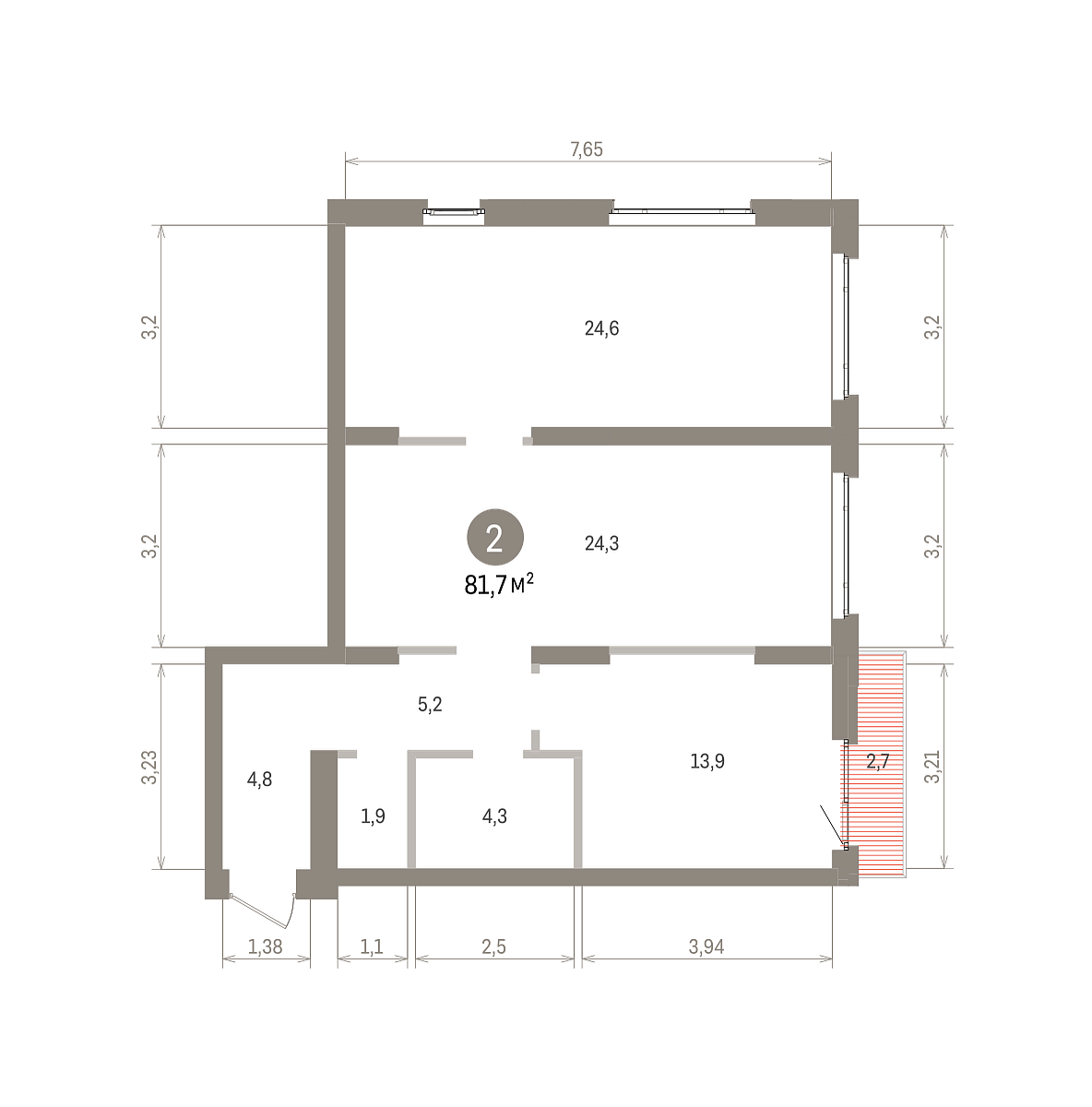 Общая площадь 81.7 м2
