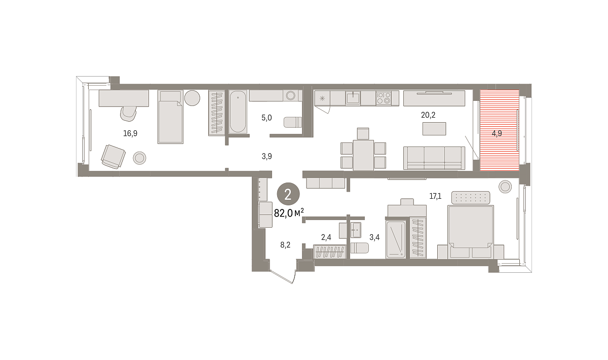 Купить новую двухкомнатную квартиру 81.99 м² на 5/7 этаже в ЖК «Кварталы «На Минской»», г. Тюмень за 11660000 ₽ | Агентство недвижимости «Вплюсе.Топ» — Недвижимость России