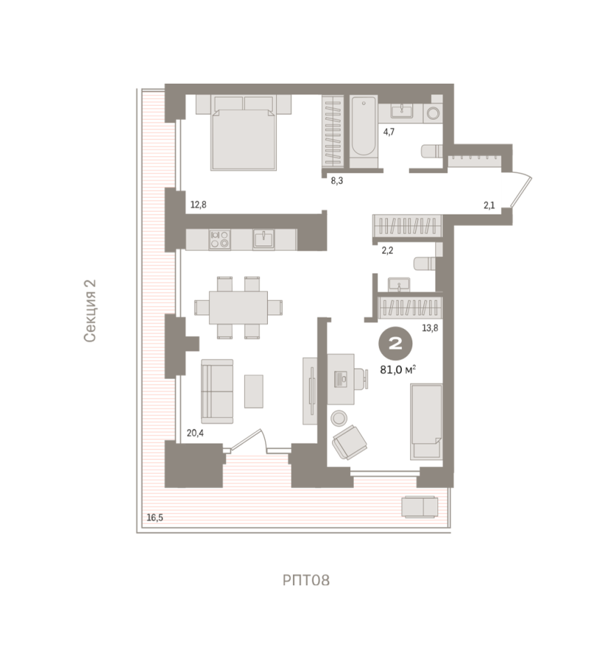Купить новую двухкомнатную квартиру 81 м² на 5/9 этаже в ЖК «Речной порт», г. Тюмень за 14740000 ₽ | Агентство недвижимости «Вплюсе.Топ» — Агентство недвижимости "Вплюсе.Топ"