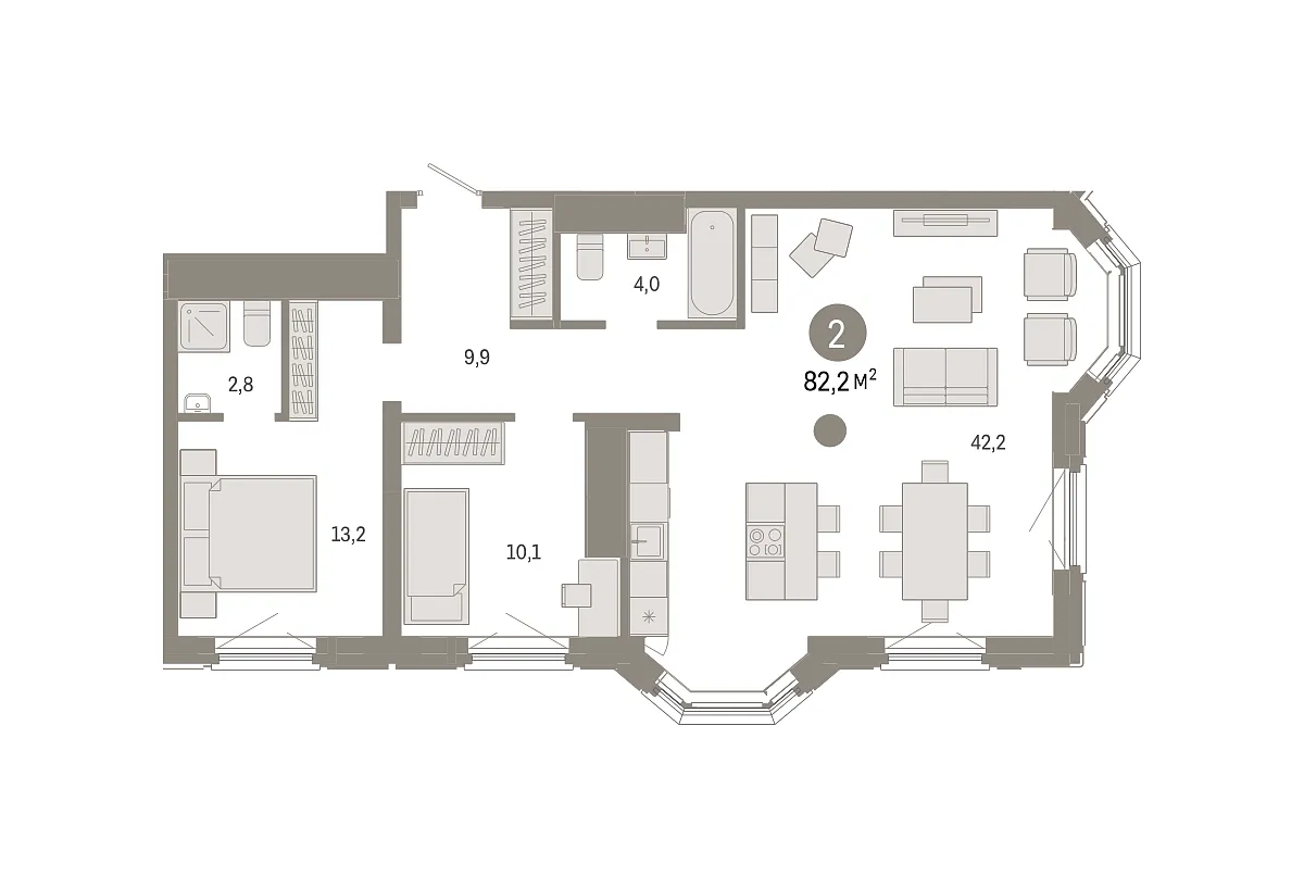 Количество комнат: 2, 82.2 кв.м.