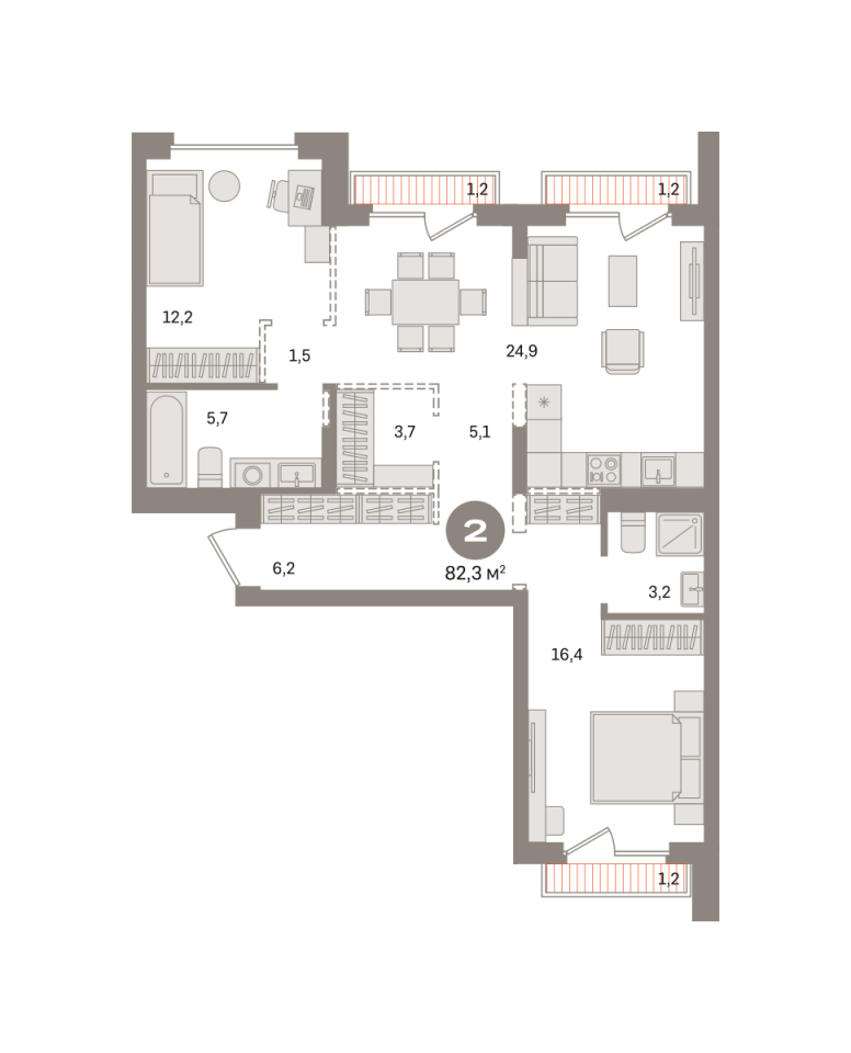 Купить новую двухкомнатную квартиру 82.3 м² на 9/9 этаже в ЖК «Первый квартал», г. Тюмень за 13400000 ₽ | Агентство недвижимости «Вплюсе.Топ» — Агентство недвижимости "Вплюсе.Топ"