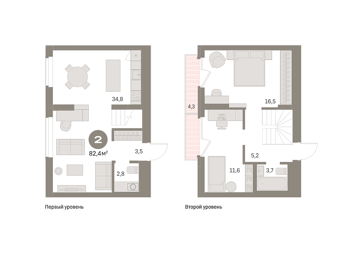 Количество комнат: 2, 82.35 кв.м.