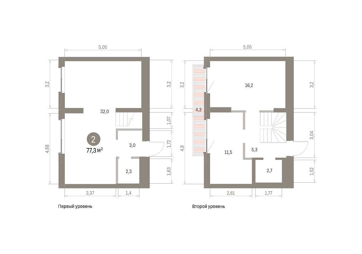 Площадь (общ/жил/кух), м2: 77.14/24.11/29.18