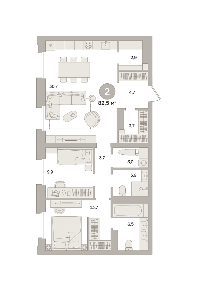 Купить новую двухкомнатную квартиру 82.5 м² на 21/24 этаже в ЖК «Квартал «МОНС»», г. Тюмень за 37980000 ₽ | Агентство недвижимости «Вплюсе.Топ» — Недвижимость России