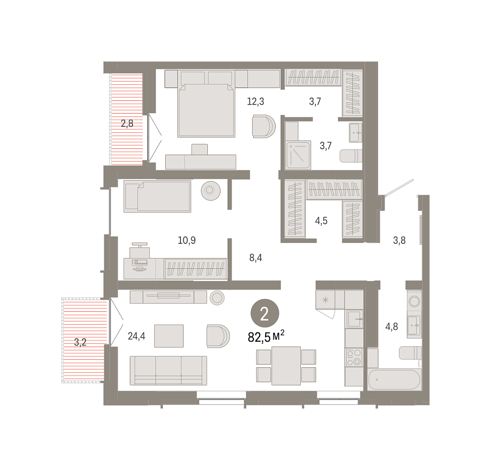 Купить новую двухкомнатную квартиру 82.53 м² на 15/16 этаже в ЖК «Республики 205», г. Тюмень за 9530000 ₽ | Агентство недвижимости «Вплюсе.Топ» — Недвижимость России