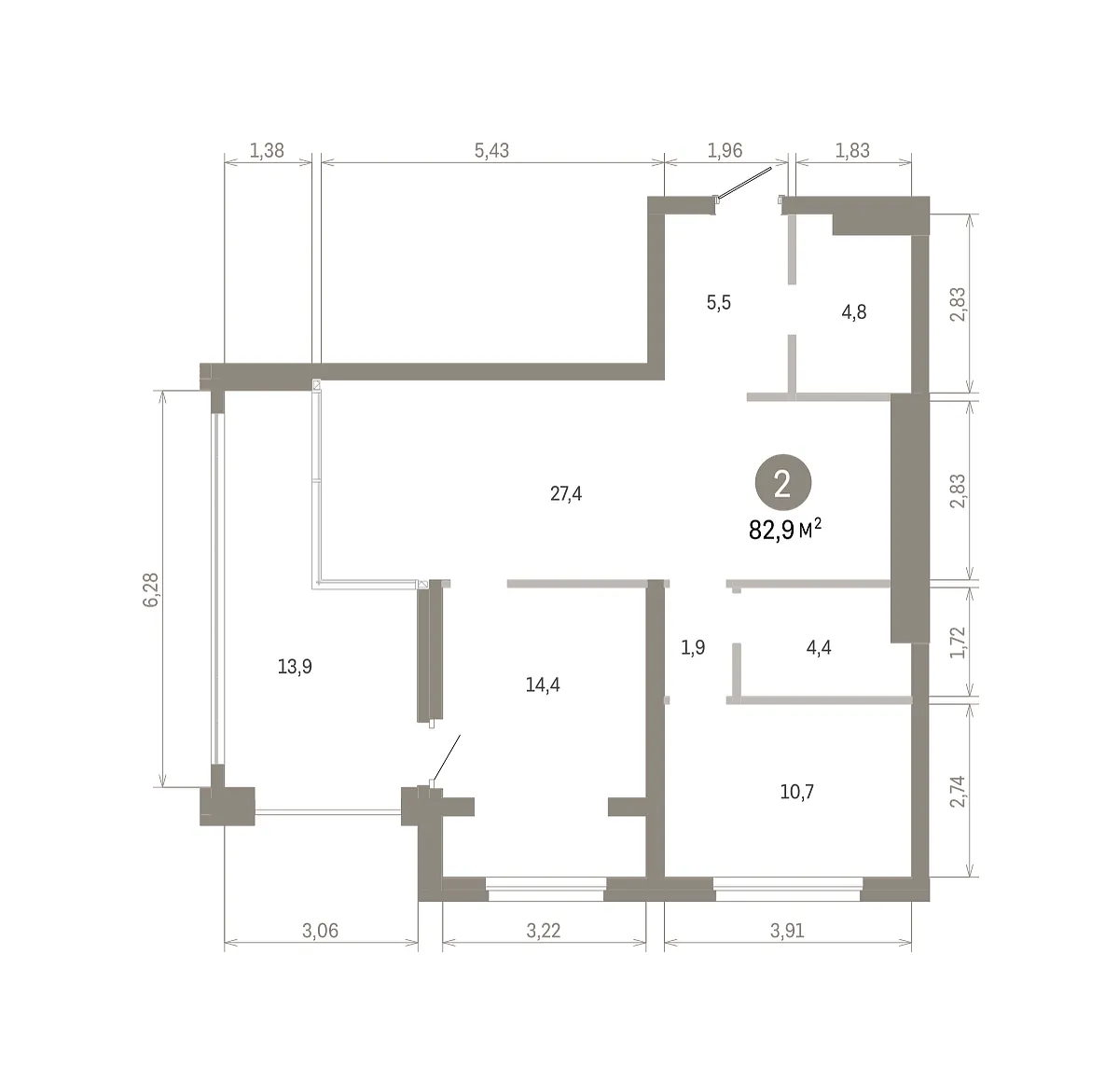Количество комнат: 2, 82.93 кв.м.