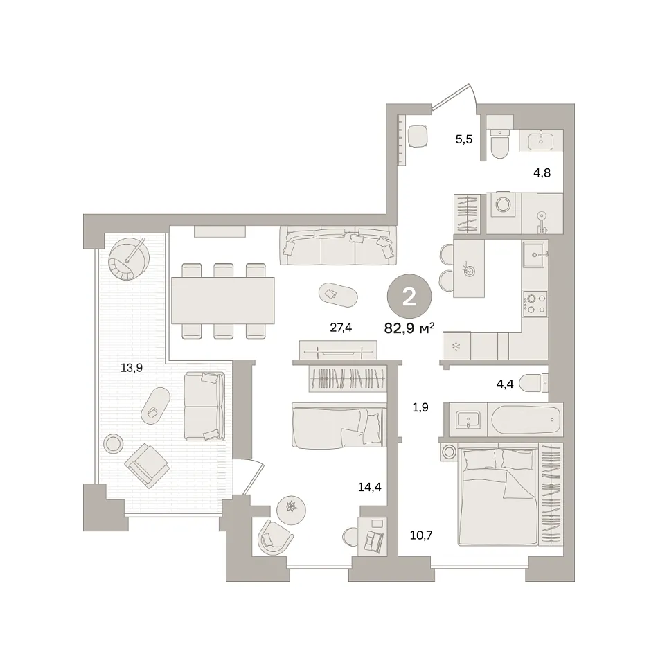 Количество комнат: 2, 82.93 кв.м.