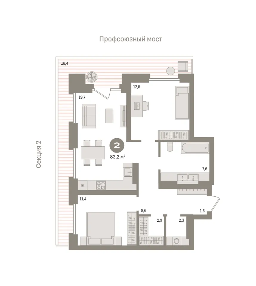 Купить новую двухкомнатную квартиру 83.2 м² на 4/9 этаже в ЖК «Речной порт», г. Тюмень за 14640000 ₽ | Агентство недвижимости «Вплюсе.Топ» — Недвижимость России