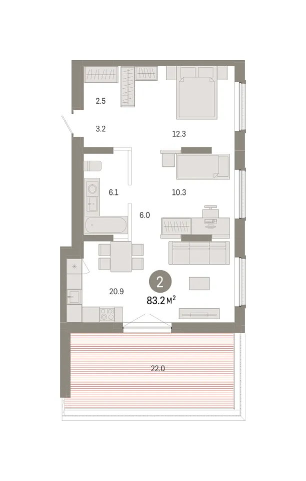 Количество комнат: 2, 83.21 кв.м.