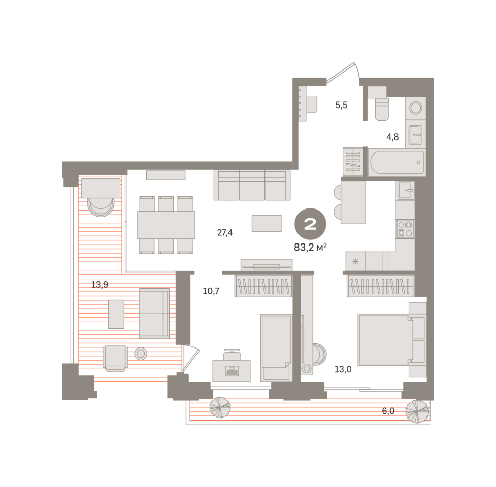 Количество комнат: 2, 83.24 кв.м.
