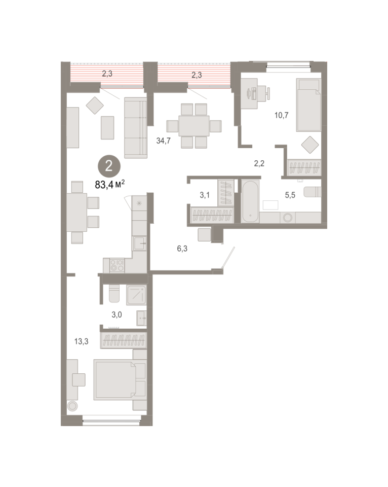 Купить новую двухкомнатную квартиру 83.39 м² на 4/9 этаже в ЖК «Октябрьский на Туре», г. Тюмень за 9000000 ₽ | Агентство недвижимости «Вплюсе.Топ» — Агентство недвижимости "Вплюсе.Топ"
