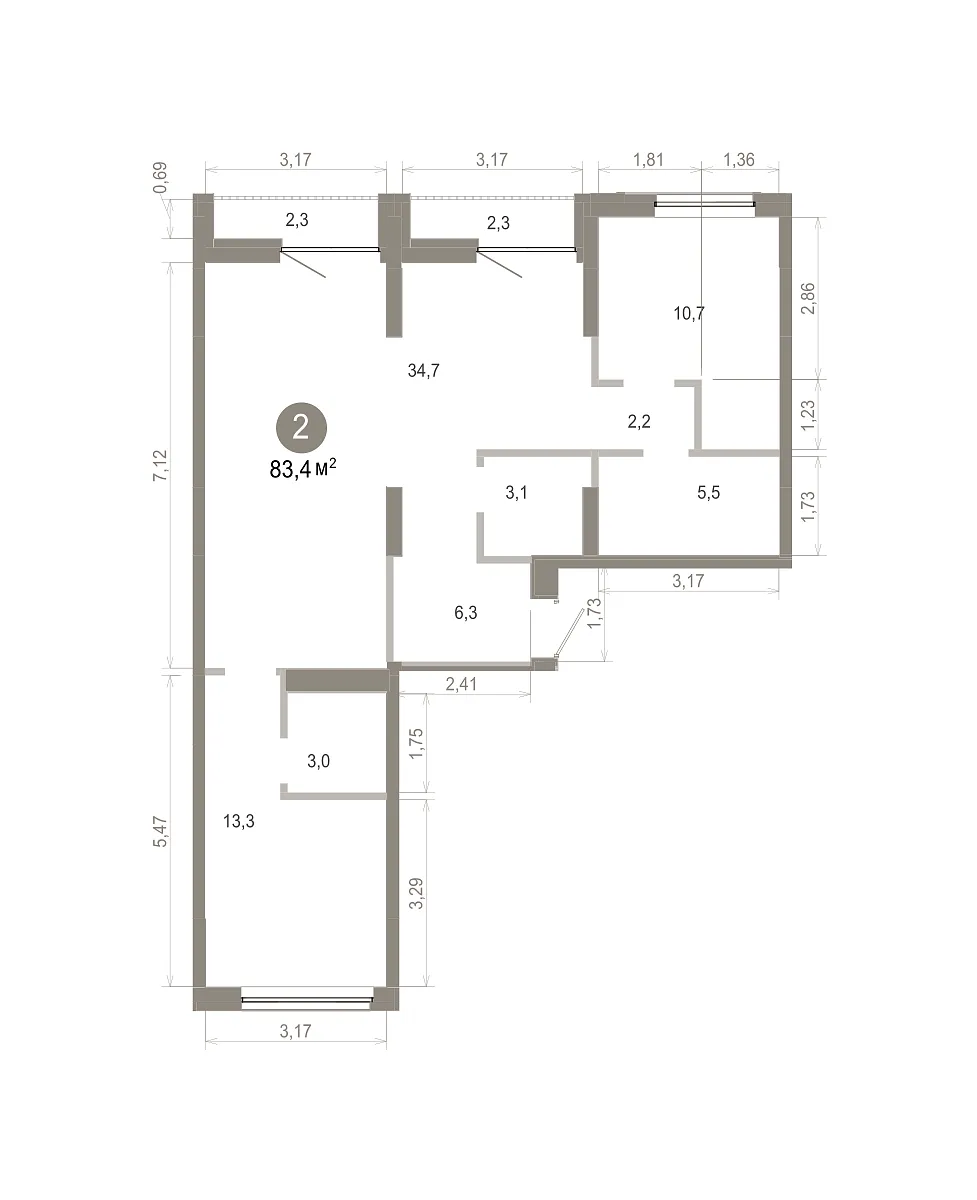 Количество комнат: 2, 83.39 кв.м.