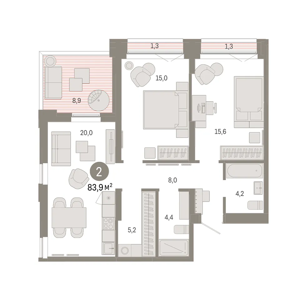 Купить новую двухкомнатную квартиру 83.89 м² на 16/16 этаже в ЖК «Шишимская горка», г. Тюмень за 13630000 ₽ | Агентство недвижимости «Вплюсе.Топ» — Недвижимость России
