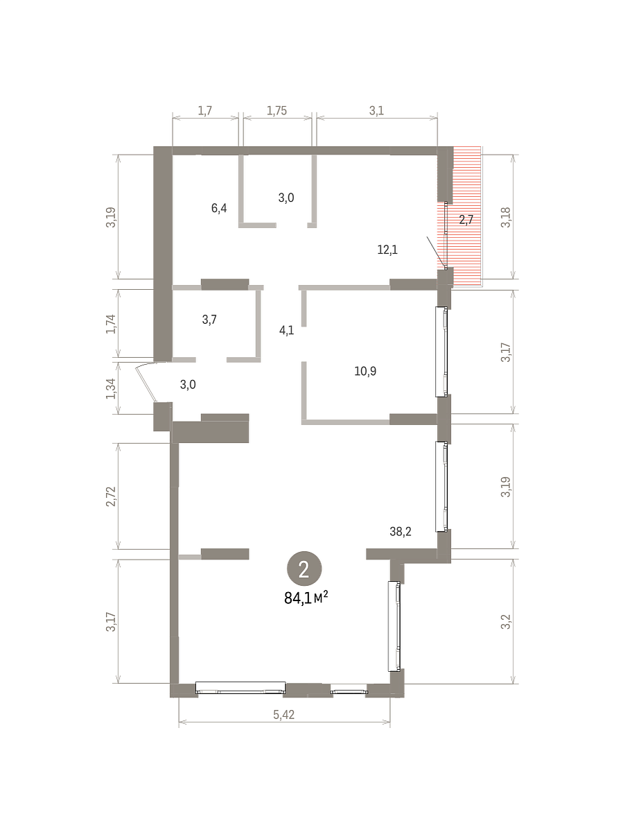 Количество комнат: 2, 84.1 кв.м.