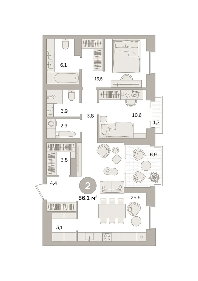 Купить новую двухкомнатную квартиру 86.1 м² на 18/25 этаже в ЖК «Квартал «МОНС»», г. Тюмень за 38450000 ₽ | Агентство недвижимости «Вплюсе.Топ» — Недвижимость России