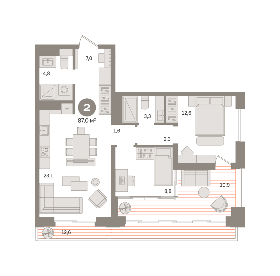 Купить новую двухкомнатную квартиру 86.99 м² на 11/27 этаже в ЖК «Квартал «МОНС»», г. Тюмень за 38980000 ₽ | Агентство недвижимости «Вплюсе.Топ» — Агентство недвижимости "Вплюсе.Топ"