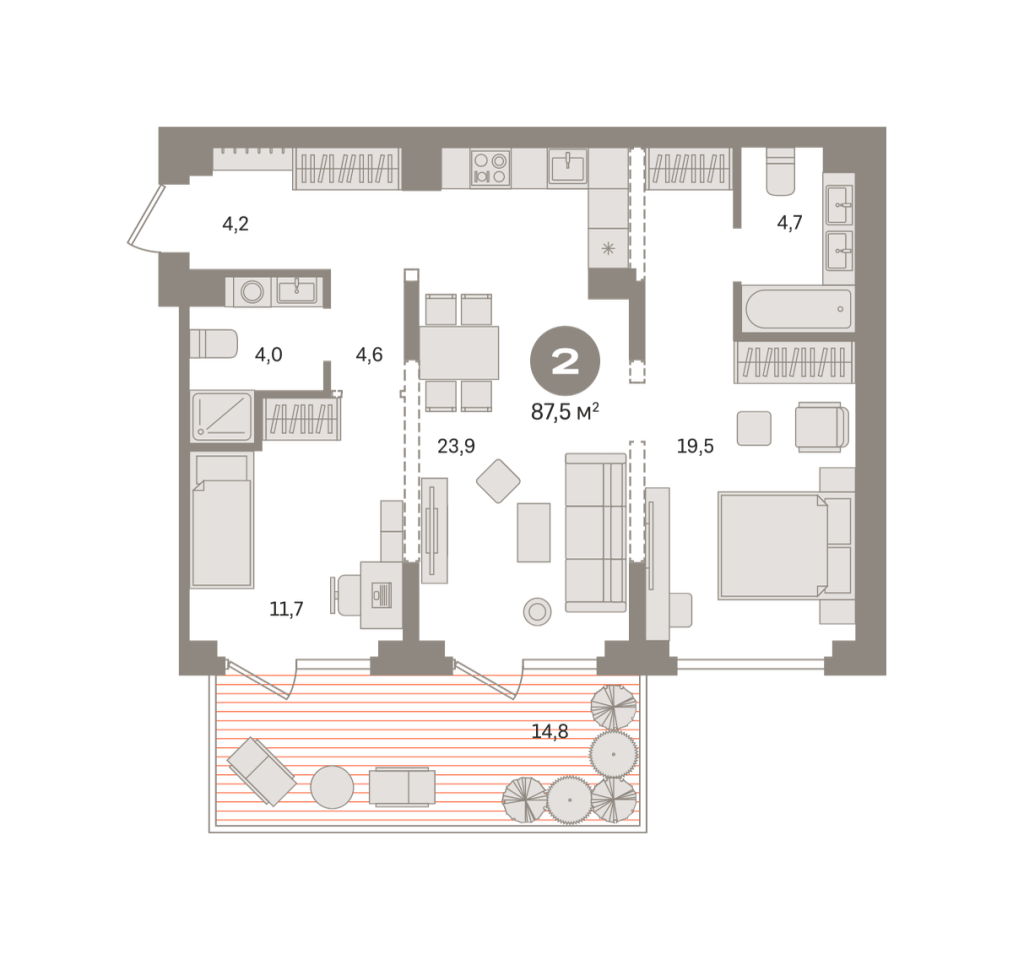 Купить новую двухкомнатную квартиру 87.48 м² на 1/9 этаже в ЖК «Первый квартал», г. Тюмень за 14140000 ₽ | Агентство недвижимости «Вплюсе.Топ» — Агентство недвижимости "Вплюсе.Топ"