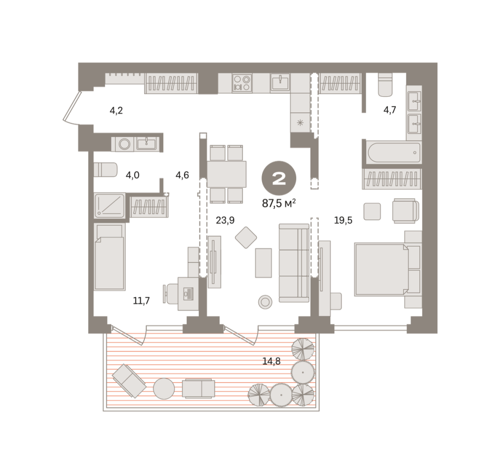 Количество комнат: 2, 87.48 кв.м.