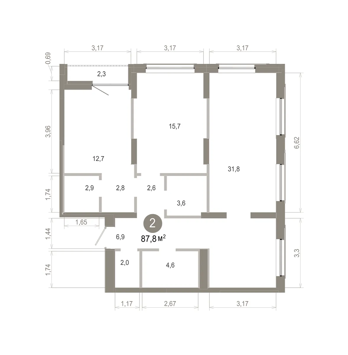 Количество комнат: 2, 87.81 кв.м.